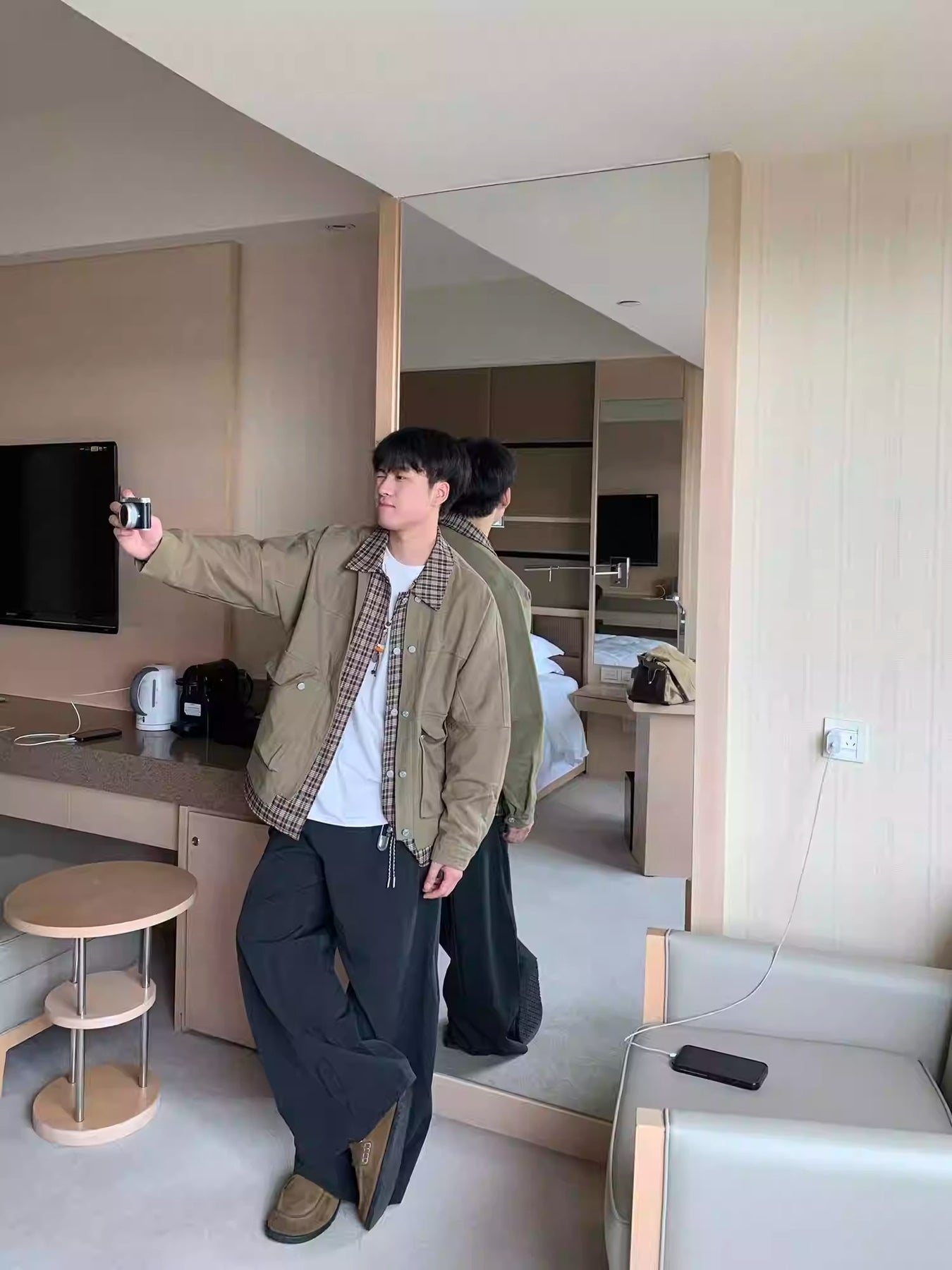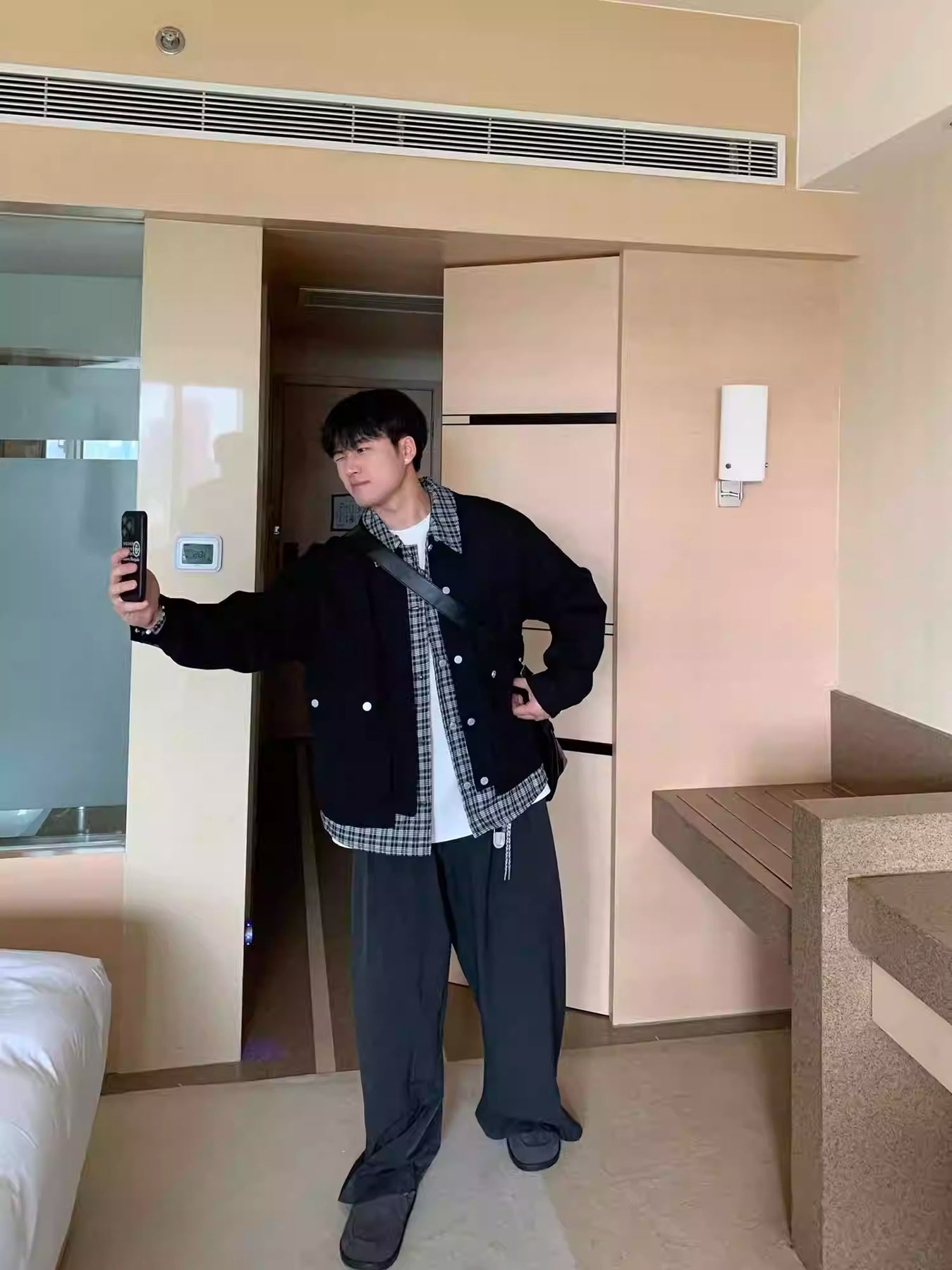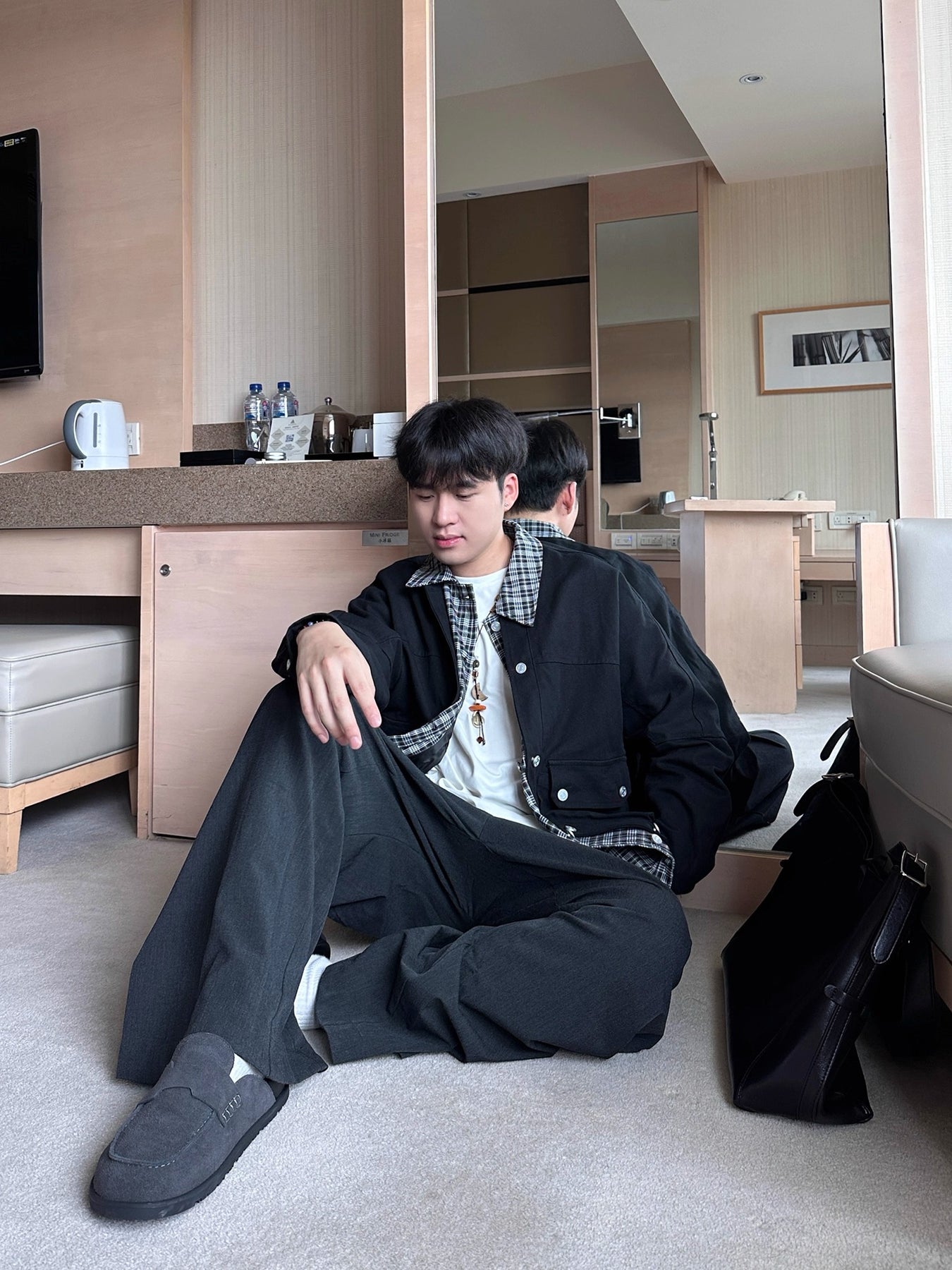 [OV] PLAID LAYERED WORK JACKET st5049